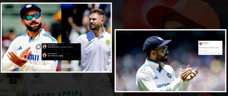 वर्ल्ड टेस्ट चैंपियनशिप 2025 का फाइनल मुकाबला लॉर्ड्स क्रिकेट ग्राउंड में खेला जा रहा है, जहां दक्षिण अफ्रीका के बल्लेबाज़ एडन मार्करम ने चौथी पारी में शानदार शतक जड़ा। उनके इस प्रदर्शन के बाद विराट कोहली का 2018 में किया गया ट्वीट तेजी से वायरल हो रहा है। कोहली ने लिखा था, “एडन मार्करम की बैटिंग देखना एक आनंददायक अनुभव है!” यह ट्वीट तब किया गया था जब मार्करम ने ऑस्ट्रेलिया के खिलाफ केपटाउन टेस्ट में 84 रन बनाए थे। इस बार फाइनल में मार्करम ने बल्ले और गेंद दोनों से बेहतरीन प्रदर्शन किया। पहली पारी में नाकाम रहने के बाद उन्होंने दूसरी पारी में 102 रन बनाकर टीम को मजबूत स्थिति में पहुंचाया। बावुमा के साथ उनकी 143 रनों की साझेदारी से अफ्रीका को जीत के लिए अब सिर्फ 69 रन की जरूरत है।
