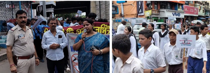 नशीले पदार्थो के दुरुपयोग और अवैध तस्करी के खिलाफ अंतरराष्ट्रीय मादक द्रव्य निषेध एवं तस्करी रोकथाम दिवस अवसर पर दुर्गापुर के फरीदपुर पुलिस फाड़ी द्वारा दुर्गापुर के भिड़ंगी टीएन हाई स्कूल के छात्रों के साथ बेनाचिति से भिड़ंगी मोड़ तक एक जागरूकता रैली का आयोजन किया गया। इस मौके पर दुर्गापुर पुलिस थाना के प्रभारी संजीव डे, दुर्गापुर महिला पुलिस थाना की प्रभारी स्नेहमिता मंडल, दुर्गापुर यातायात के प्रभारी संदीप सोम और फरीदपुर पुलिस फाड़ी के प्रभारी मदन मोहन दत्त और दुर्गापुर नगर निगम प्रशासक सदस्य राखी तिवारी, राम प्रसाद हलदर सहित अन्य उपस्थित थे