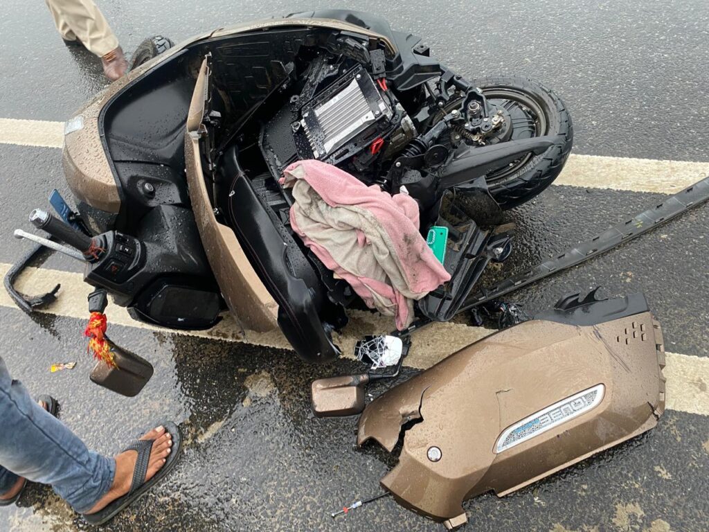 धनबाद के भुली स्थित नेशनल हाईवे पर Denobli School के सामने एक बड़ा सड़क हादसा हो गया। तेज़ बारिश के कारण एक व्यक्ति ने अपनी नई स्कूटी, जिसे वह अभी-अभी शोरूम से निकालकर ला रहा था, सड़क किनारे खड़ी कर दी थी। तभी विपरीत दिशा से आ रही एक तेज़ रफ्तार कार अचानक बेकाबू होकर एक सरकारी बिजली के खंभे से टकरा गई और फिर सीधा सड़क किनारे खड़ी स्कूटी को भी जोरदार टक्कर मार दी।