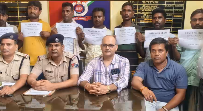 आर पी एफ की टीम ने डीजल चोरी करने वाले गिरोह का किया भंडाफोड़ 12 लोगों को पकड़ा गया आर पी एफ की टीम ने बीते दिनों में रेल इंजन से डीजल चोरी करने वाले गिरोह के कुल 12 लोगों को गिरफ्तार किया है। गिरफ्तार किए गए लोगों में क्रमशः सफीकुल इस्लाम, सल्लाम शेख, वसीम शेख, कालू शेख, जहांगीर शेख, आलमगीर आलम, जहांगीर आलम, जार्जीस शेख, रक़ीब शेख, एनारूल शेख, सैदूर शेख एवं जियाउल शामिल हैं। आर पी एफ टीम में आर पी एफ इंस्पेक्टर रजत रंजन, संजय कुमार