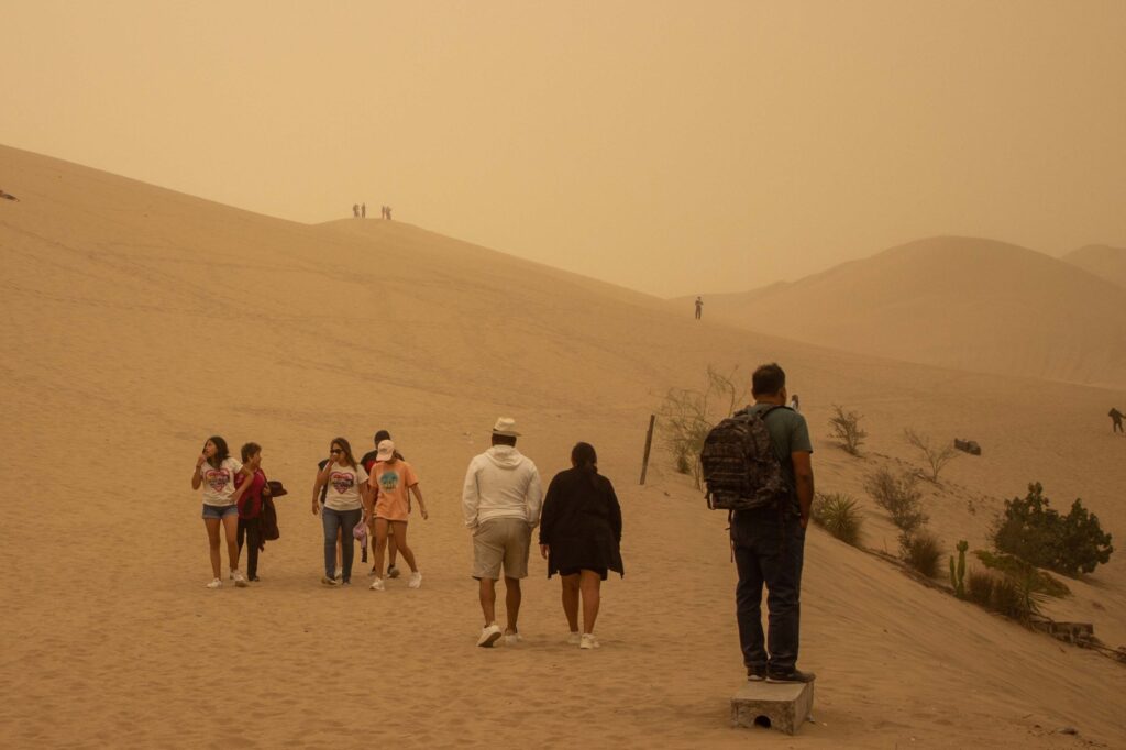 पेरू के ईका शहर में एक जबरदस्त रेत का तूफान आया. अचानक उठे इस तूफान ने देखते ही देखते पूरे शहर को धूल के सागर में डुबो दिया. कुछ ही मिनटों में पूरा इलाका नारंगी धूल में लिप्त हो गया और दिन का उजाला मानो किसी ने छीन लिया. शहर का हर शख्स किसी फिल्मी सीन का हिस्सा बनकर रह गया. रेत की इतनी मोटी परत गिरी कि सांस लेना तक मुश्किल हो गया स्थानीय लोग इस घटना से हैरान और परेशान हैं सांस लेना मुश्किल हो गया, यातायात ठप हो गया, और पर्यटन गतिविधियाँ कई घंटों के लिए बंद करनी पड़ी ।