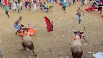 कोलंबिया के फंडासियन शहर में बुलफाइटिंग फेस्टिवल के दौरान दर्दनाक हादसा हुआ। 35 वर्षीय योवानिस मार्केज सांड को चिढ़ाने के लिए उसकी ओर दौड़े और कलाबाजी करने की कोशिश की, लेकिन गुस्साए सांड ने उन्हें सींग मारकर हवा में उछाल दिया। प्रत्यक्षदर्शियों के मुताबिक, शुरुआती टक्कर के बाद वह खड़े हुए लेकिन