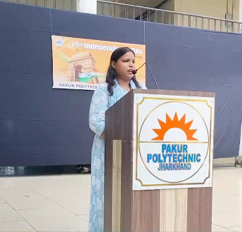 पाकुड़ पॉलिटेक्निक में 79वां स्वतंत्रता दिवस बड़े हर्ष और देशभक्ति के उत्साह के साथ मनाया गया। मुख्य कार्यक्रम की शुरुआत ध्वजारोपण से हुई, जो इस वर्ष एक अद्वितीय मिसाल बन गया जब कॉलेज के निर्देशक अमिया रंजन बडाजेना, कॉलेज के प्रशासनिक प्रमुख निखिल चंद्र और कॉलेज की प्राचार्या सुषमा यादव की उपस्थिति में संस्थान के सफाई कर्मी के हाथों राष्ट्रीय ध्वज फहराया गया। इस अनोखी पहल ने उपस्थित सभी को भावुक कर दिया और समाज में समानता, सम्मान और एकता का सशक्त संदेश दिया।ध्वजारोपण के पश्चात राष्ट्रगान हुआ जिसके बाद रंगारंग सांस्कृतिक कार्यक्रमों की शुरुआत हुई। छात्रों ने देशभक्ति गीत, नृत्य और कविता पाठ के माध्यम से देश के प्रति अपनी श्रद्धा और गर्व व्यक्त किया।