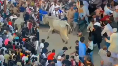 वायरल वीडियो में साफ दिख रहा है कि लोग जान बचाने के लिए इधर-उधर भाग रहे हैं, जबकि पुलिसकर्मी भी सांड से बचते नजर आए। कुछ लोग घायलों को उठाकर ले जाते दिखाई दिए। यह घटना थाना नक्खासा चौराहे की बताई जा रही है। हालांकि जुलूस पूरे प्रदेश में कड़ी सुरक्षा व्यवस्था के बीच निकाला गया था, लेकिन संभल की इस घटना ने लोगों में दहशत फैला दी।