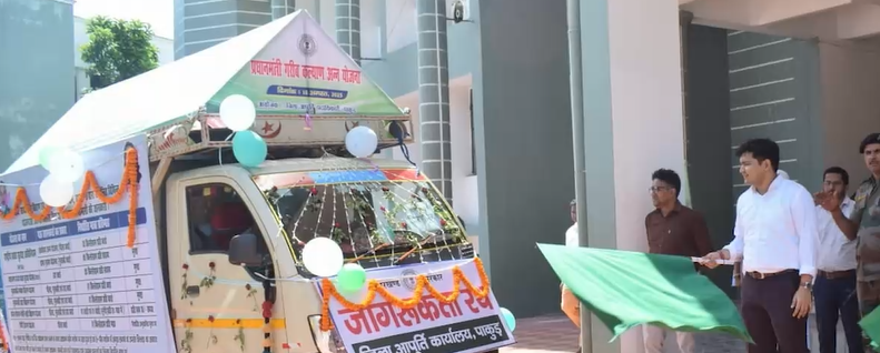 समाहरणालय परिसर से प्रधानमंत्री गरीब अन्न कल्याण योजना का जिले में व्यापक प्रचार-प्रसार हेतु तैयार किए गए तीन प्रचार वाहनों को उपायुक्त मनीष कुमार व जिला आपूर्ति पदाधिकारी अभिषेक कुमार सिंह एवं जिला सहकारिता पदाधिकारी चन्द्रजीत खलखो के द्वारा संयुक्त रूप से हरी झंडी दिखाकर रवाना किया गया। उक्त सभी रथ जिले के ग्रामीण क्षेत्रों में भ्रमण कर प्रधानमंत्री गरीब अन्न कल्याण योजना से संबंधित जानकारी के प्रचार प्रसार का कार्य करेंगे।
