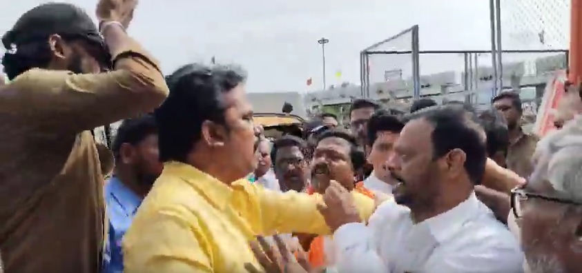 आंध्र प्रदेश में गठबंधन नेताओं के बीच पैसों को लेकर खींचतान अब खुलकर सामने आ गई है। नलगोंडा ज़िले के वन टाउन रथम सेंटर पर तेदेपा नेता मैलावरापु वीरबाबू और भाजपा नगर अध्यक्ष अद्दुरी श्रीराम आपस में भिड़ते नजर आए। दोनों नेताओं की बीच सड़क पर हुई तीखी बहस को देखने के लिए आसपास भीड़ जुट गई। इस झगड़े