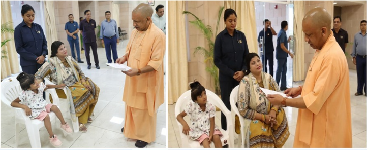 नता दर्शन कार्यक्रम में आज कानपुर की छोटी बच्ची मायरा अपनी मां के साथ मुख्यमंत्री योगी आदित्यनाथ से मिली। मायरा ने मासूमियत से कहा—”मेरा एडमिशन करा दीजिए, मैं बड़ी होकर डॉक्टर बनना चाहती हूं।” मुख्यमंत्री ने बच्ची की बात ध्यान से सुनी और तुरंत अधिकारियों को उसके एडमिशन की