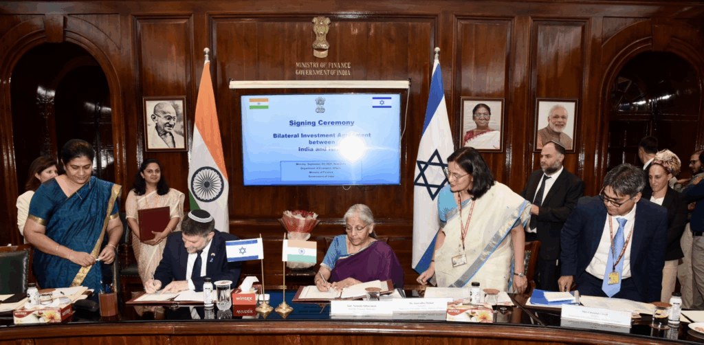 भारत और इज़राइल ने आज एक ऐतिहासिक द्विपक्षीय निवेश समझौते (BIT) पर आधिकारिक रूप से हस्ताक्षर किए। इस अवसर पर भारत की वित्त मंत्री सुश्री निर्मला सीतारमण और इज़राइल के वित्त मंत्री महामहिम बेज़ेलेल स्मोट्रिच मौजूद रहे। यह नया समझौता दोनों देशों के निवेशकों के बीच पारस्परिक निवेश को बढ़ावा देगा और उच्च तकनीक, वित्तीय प्रौद्योगिकी, कृषि और बुनियादी ढाँचे के क्षेत्रों में सहयोग को मजबूत करेगा।