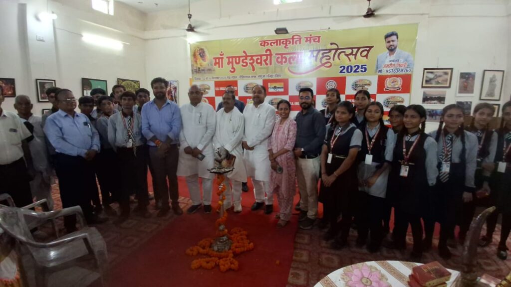 इस महोत्सव का आयोजन प्रतिष्ठित कलाकार अमरीश तिवारी द्वारा किया गया, जिन्होंने कला, संस्कृति और परंपरा को जोड़ते हुए इसे एक यादगार कार्यक्रम के रूप में प्रस्तुत किया। इस महोत्सव का उद्घाटन माननीय मंत्री श्री संतोष सिंह द्वारा विधिवत रूप से किया गया। समारोह में विशिष्ट अतिथियों के रूप में विधायक भारत बिन्द, पूर्व जिला अध्यक्ष जीतेन्द्र पाण्डेय, तथा नगर सभापति विकास तिवारी उपस्थित रहे। सभी अतिथियों ने कला को समाज की चेतना का आधार बताते हुए, कलाकारों को प्रोत्साहित करने की आवश्यकता पर बल दिया। कार्यक्रम में चित्रकला, मूर्तिकला, लोककला,आधुनिक अभिव्यक्तियों तथा सांस्कृतिक प्रस्तुतियों की प्रदर्शनी लगाई गई है। उपस्थित दर्शकों ने विविध कला रूपों का आनंद लिया तथा कलाकारों से संवाद कर उनके कार्य की सराहना की, तथा मंत्री में बाहर से आए कलाकारों को अंग बस्त्र व मोमेंटो से सम्मानित किए और सबको अस्वस्थ किया की मुंडेस्वरी में बंद पड़ी मियूजिम को खुलावाने की बात सदन तक पहुंचाऊंगा,और प्रयास में सफल होगा मैं बिस्वास दिलाता हुँ। कार्यक्रम में कैटलॉग का सफल बिमोचन किया गया अमरीश तिवारी ने कहा, “माँ मुंडेश्वरी की प्रेरणा से कला को जन-जन तक पहुँचाना ही हमारा उद्देश्य है। यह महोत्सव स्थानीय प्रतिभाओं को मंच देने के साथ-साथ हमारी संस्कृति को समृद्ध करने का प्रयास है।” कार्यक्रम में अमरीश ने मुंडेस्वरी धाम में बंद पड़ी