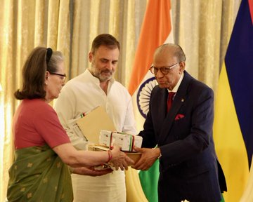 कांग्रेस अध्यक्ष सोनिया गांधी और विपक्ष के नेता राहुल गांधी ने मॉरीशस गणराज्य के प्रधानमंत्री डॉ. नवीनचंद्र रामगुलाम से मुलाकात की। यह मुलाकात नई दिल्ली में हुई, जहां दोनों नेताओं ने आपसी संबंधों और सहयोग को लेकर विचार-विमर्श किया। बैठक के दौरान भारत और मॉरीशस के ऐतिहासिक