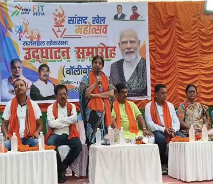 रेलवे मैदान में सांसद खेल महोत्सव 2025 का आगाज वॉलीबॉल प्रतियोगिता से हुई।आयोजन का नेतृत्व भाजपा जिलाध्यक्ष अमृत पांडेय ने किया। मुख्य अतिथि के रूप में भाजपा के प्रदेश मंत्री दुर्गा मरांडी, मीरा प्रवीण सिंह, सम्पा साहा, हिसाबी राय, विवेकानंद तिवारी, रूपेश भगत, अनिकेत गोस्वामी, दिपक साहा उपस्थित थे। उद्घाटन मैच जिला वॉलीबॉल संघ एवं लुतफल वॉरियर्स के बीच खेला गया।अतिथियों ने भारत माता, डॉ श्यामा प्रसाद मुखर्जी,दीनदयाल उपाध्या के चित्रों पर पुष्पांजलि कर कार्यक्रम का विधिवत शुभारंभ किया।प्रदेश मंत्री दुर्गा मरांडी ने कहा कि खेल ना केवल शरीर को तंदुरुस्त रखता है बल्कि समाज को अनुशासन और ऊर्जा से भी भरता है।उन्होंने युवाओं को संदेश दिया कि यदि देश को विकसित भारत बनाना है तो पहले फिटनेस और हेल्थ पर जोर देना होगा। कार्यक्रम मे स्कूल कॉलेज के छात्रों के अलावा जिले के विभिन्न प्रखंडों के खिलाड़ियों ने बढ़-चढ़कर का हिस्सा लिया। जिलाध्यक्ष अमृत पांडेय ने कहा कि यह महोत्सव सिर्फ एक खेल आयोजन नहीं बल्कि एक आंदोलन है। उन्होंने कहा कि स्वस्थ भारत के बिना विकसित भारत बनाने की कल्पना अधूरी है। कार्यक्रम में विपिन कुमार चौधरी, राणा शुक्ला, उजय राय, लाल्टू भौमिक, संजय राय, अविनाश पंडित, मुन्ना रविदास, अभिषेक भगत, जितेश रजक, ओमप्रकाश नाथ, अजीत मंडल, मनीष कुमार, रतुल दे उपस्थित थे।