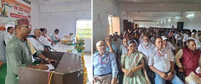 इसलिए इसको व्यापक अर्थ में समझना जरूरी है। स्व से मतलब स्वदेशी सर्वोदय एवं स्वराज है। उन्होंने स्वामी विवेकानंद व महर्षि अरविंद जिक्र करते हुए धर्म का अर्थ समझाया। संगोष्ठी का विषय प्रवेश राष्ट्रीय स्वयंसेवक संघ के दक्षिण बिहार के शारीरिक प्रांत प्रमुख राजन जी ने किया। इस मौके पर महाविद्यालय के पूर्व उप प्राचार्य डॉ श्याम बिहारी सिंह, अवकाश प्राप्त प्राध्यापक प्रोफेसर बच्चन सिंह ने अपने विचार रखे। कार्यक्रम की अध्यक्षता प्रभारी प्राचार्य डॉक्टर महात्तिम सिंह ने एवं संचालन डॉ लक्ष्मण शरण सिंह ने किया। इस मौके पर राष्ट्रीय स्वयंसेवक संघ काशी के क्षेत्र पर्यावरण प्रमुख अजय जी, विभाग कार्यालय प्रमुख जागेश्वर जी, ओम प्रकाश जी, भाजपा के पूर्व जिला अध्यक्ष जितेंद्र पांडे, मनोज जायसवाल, राणा प्रताप सिंह, दीनानाथ सिंह, काशीनाथ सिंह, रवि सिंह, संतोष सिंह कई गणमान्य लोग की उपस्थित थे। साथी महाविद्यालय के प्राध्यापक प्रोफेसर दिनेश्वर कुमार सिंह, डॉ राधेश्याम सिंह, डॉ शशिकांत सिंह, डॉ जितेंद्र सिंह, डॉ गोपाल गोस्वामी, प्रो मोहम्मद मुख्तार आलम, डॉ उदय प्रताप सिंह, डॉ माया सिंह, अंगद सिंह, डॉ उदय प्रताप सिंह, डॉ बी स्वैन सहित महाविद्यालय के छात्र-छात्राएं उपस्थित रहे। राष्ट्रगान से हुआ कार्यक्रम का समापन मोहनियां। महाराणा प्रताप महाविद्यालय में आयोजित एकदिवसीय संगोष्ठी के समापन के मौके पर राष्ट्रगान गया गया। उसके पहले भारत माता के चित्र पर अतिथियों ने माल्यार्पण किया। दीप प्रज्वलित के साथ कार्यक्रम का शुभारंभ किया गया। महाविद्यालय के नेशनल कैडेट कोर के प्रतिभागियों ने स्वागत गीत गाकर माहौल को काफी अच्छा बना दिया। खचाखच भरे सभागार में इस आयोजन के दौरान राष्ट्रभक्ति की भावना दिखाई दे रही थी। अपने संबोधन के दौरान मुख्य अतिथि ने भारतीय संस्कृति और सभ्यता को अपने पर जोर दिया।