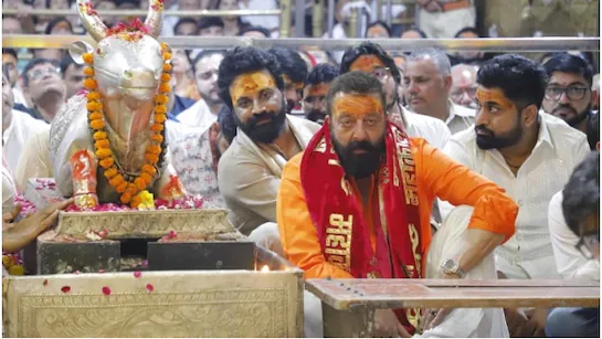 बॉलीवुड के दिग्गज अभिनेता संजय दत्त मध्य प्रदेश के उज्जैन स्थित महाकालेश्वर मंदिर पहुंचे। अभिनेता ने मंदिर में दर्शन किए और भस्म आरती में भी हिस्सा लिया। संजय दत्त ने मंदिर में प्रवेश करते समय साधारण ट्रेडिशनल ड्रेस पहन रखी थी। भस्म आरती के दौरान उन्हें अन्य दर्शनार्थियों के साथ भक्ति में डूबा देखा गया। महाकालेश्वर मंदिर, शिप्रा नदी के तट पर स्थित, भगवान शिव के बारह ज्योतिर्लिंगों में से एक है। संजय दत्त ने भगवान भोलेनाथ के चरणों में माथा टेका और आशीर्वाद लिया। मंदिर में उनका आगमन भारी सुरक्षा व्यवस्था के बीच हुआ और वीडियो सोशल मीडिया पर वायरल हो रहा
