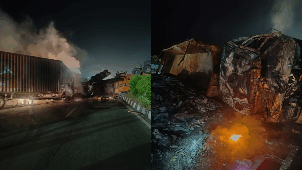 राजस्थान के जयपुर-दूदू नेशनल हाईवे पर मंगलवार सुबह एक भीषण सड़क हादसा हुआ। दूदू के पास बिस्किट से भरा ट्रक ट्रेलर से टकरा गया और टक्कर के बाद आग लग गई। ट्रक चालक कैबिन में फंस गया और जलकर उसकी मौके पर ही मौत हो गई। दो अन्य लोग गंभीर रूप से घायल हैं और उन्हें अस्पताल में भर्ती कराया गया। हादसे के कारण जयपुर से