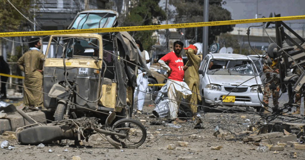 पाकिस्तान के क्वेटा शहर में मंगलवार, 30 सितंबर को एक बड़ा कार बम धमाका हुआ। अधिकारियों के अनुसार, इस विस्फोट में कम से कम 10 लोगों की मौत हो गई और 32 लोग घायल हुए। मरने वालों में 4 उग्रवादी भी शामिल हैं। घटना के तुरंत बाद एम्बुलेंस मौके पर पहुंचीं और बचावकर्मियों ने घायलों को पास के अस्पतालों में इलाज के लिए भेजा। क्वेटा के SSP मोहम्मद बलोच ने बताया कि धमाका पैरामिलिट्री फोर्स हेडक्वार्टर के पास विस्फोटक से भरी गाड़ी में हुआ। विस्फोट इतना जोरदार था कि आसपास के घरों की खिड़कियां टूट