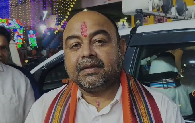 बिहार सरकार के श्रम संसाधन मंत्री संतोष सिंह ने दुर्गा पूजा के अवसर पर मोहनिया नगर के चांदनी चौक पर बने पूजा पंडाल में मां दुर्गा की पूजा अर्चना की और आराधना की इस दौरान मां दुर्गा के सामने माथा टेक कर आशीर्वाद भी लिया,मंत्री संतोष सिंह ने सुरक्षा व्यवस्था का भी नगर में पूजा पंडाल के आसपास जायजा लिया। इस दौरान विपक्ष पर हमला बोलते हुए मंत्री संतोष सिंह ने कहा की मैंने मां दुर्गा से कामना किया कि पूरा कैमूर जिला सहित बिहार व देश सुखी रहे समृद्ध और माता रानी से मैंने एक आशीर्वाद मांगा है कि हे माता रानी *जो देश तोड़ने वाले लोग हैं जो बिहार को गाली देते हैं अपमानित करते हैं उनको भी सद्बुद्धि दें ताकि बिहार के विकास में राजनीति से ऊपर उठ कर अपना योगदान दें