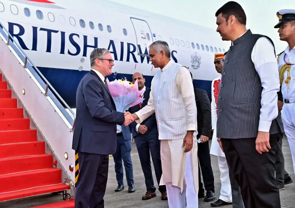 ब्रिटेन के प्रधानमंत्री कीर स्टारमर आज सुबह मुंबई पहुंचे। उनका विमान छत्रपति शिवाजी महाराज अंतर्राष्ट्रीय हवाई अड्डे पर उतरा, जहां महाराष्ट्र के मुख्यमंत्री देवेंद्र फडणवीस, उपमुख्यमंत्री एकनाथ शिंदे और अजित पवार, साथ ही राज्यपाल आचार्य देवव्रत ने उनका गर्मजोशी से स्वागत किया। कीर स्टारमर भारत यात्रा के दौरान व्यापारिक और रणनीतिक