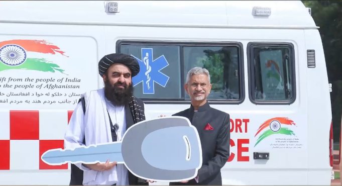 भारत ने सद्भावना के तौर पर अफगानिस्तान को 20 एम्बुलेंस उपहार में दीं। विदेश मंत्री डॉ. एस. जयशंकर ने इनमें से 5 एम्बुलेंस व्यक्तिगत रूप से अफगान विदेश मंत्री मुत्तकी को