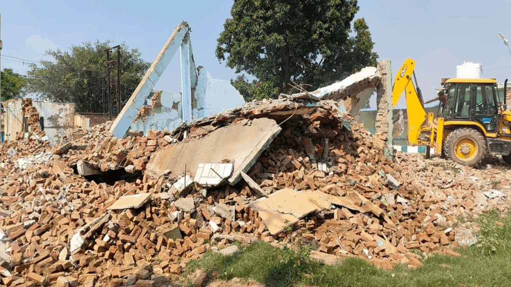 कल्कि धाम के नज़दीक सरकारी सार्वजनिक पार्क की जमीन पर स्थित लगभग 40 साल पुरानी मस्जिद को प्रशासन ने गिरा दिया। यह मस्जिद अवैध निर्माण मानी जा रही थी। पहले मस्जिद कमेटी को नोटिस भेजा गया था, लेकिन पूरी तरह से निर्माण नहीं हटाने पर न्यायालय ने बेदखली का आदेश दिया। मलबा हटाकर जगह को कब्जामुक्त कराने के लिए नायब