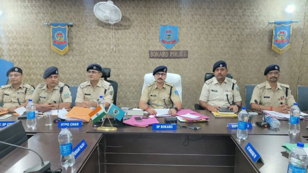 दिनांक 14 अक्टूबर 2025 को बोकारो पुलिस अधीक्षक की अध्यक्षता में पुलिस अधीक्षक कार्यालय के सभागार भवन में मासिक अपराध समीक्षा बैठक (Monthly Crime Review Meeting) आयोजित की गई। इस बैठक में सभी SDPO/DySP, सर्किल इंस्पेक्टर और जिले के सभी थाना एवं ओपी प्रभारी उपस्थित रहे। बैठक के दौरान पुलिस अधीक्षक ने जिले में घटित विभिन्न प्रकार के अपराध, विधि-व्यवस्था की स्थिति और अपराध नियंत्रण की रणनीतियों पर विस्तार से चर्चा की। उन्होंने लंबित मामलों के शीघ्र निष्पादन, अपराधियों की