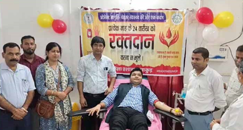 प्रोजेक्ट जागृति के तहत जिले के सभी प्रखंडों में रक्तदान शिविर का आयोजन किया गया। यह आयोजन रक्त अधिकोष, पुराना सदर अस्पताल पाकुड़, सामुदायिक स्वास्थ्य केंद्र हिरणपुर, लिट्टीपाड़ा, अमड़ापाड़ा, महेशपुर एवं पाकुड़िया में एक साथ किया गया।उपायुक्त मनीष कुमार ने रक्तदान शिविर का उद्घाटन कर स्वयं रक्तदान किया। यह उनका 23वां रक्तदान एवं पाकुड़ में चौथा रक्तदान था। उपायुक्त मनीष कुमार के साथ अनुमंडल पदाधिकारी साईमन मरांडी, जिला भू-अर्जन पदाधिकारी अजय सिंह बड़ाईक, प्रभारी डीपीएम ई-पंचायत आनंद प्रकाश, पीएमयू सेल के कर्मियों समेत कई अधिकारियों ने भी रक्तदान किया।शिविर में प्रखंड स्तरीय पदाधिकारी, कर्मचारियों एवं आम नागरिकों ने भी स्वेच्छा से रक्तदान किया। कुल 218 रक्तदाताओं ने इस शिविर में भाग लेकर समाज सेवा की मिसाल पेश की।उपायुक्त ने कहा कि रक्तदान महादान है क्योंकि इससे अनगिनत जिंदगियाँ बचाई जा सकती हैं। सभी को इस पवित्र कार्य में आगे आना चाहिए। उन्होंने कहा कि जिले की जनसंख्या का कम से कम एक प्रतिशत रक्त यूनिट ब्लड बैंक में हर समय उपलब्ध रहना चाहिए ताकि आपात स्थिति में किसी भी जरूरतमंद को रक्त की कमी न हो। उन्होंने बताया कि प्रोजेक्ट जागृति के अंतर्गत पाकुड़ जिले में प्रत्येक माह की 24 तारीख को सभी प्रखंडों में रक्तदान शिविर का नियमित आयोजन किया जा रहा है, ताकि रक्त की उपलब्धता सुनिश्चित की जा सके और समाज में सेवा एवं सहभागिता की भावना को बढ़ावा मिले।कार्यक्रम के दौरान उपायुक्त द्वारा रक्तदाताओं को प्रमाणपत्र देकर उनका उत्साहवर्धन किया गया।