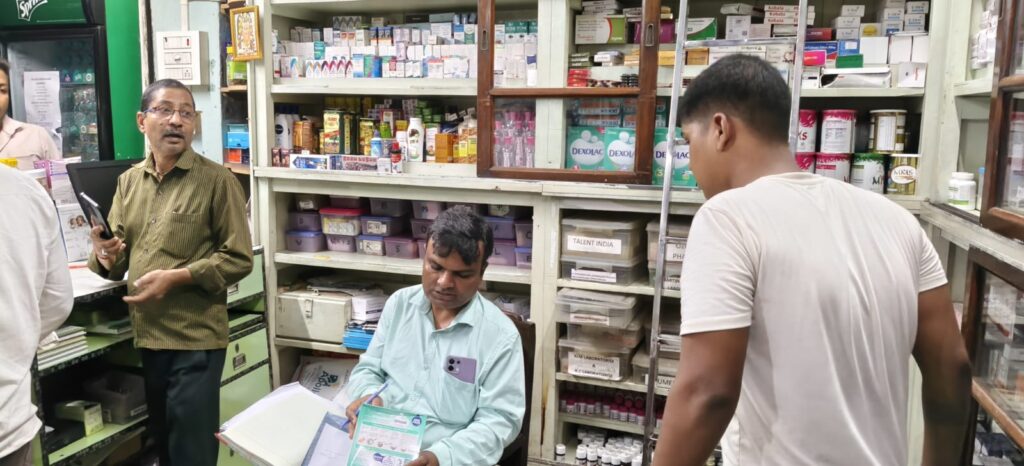 प्राप्त करने का निर्देश दिया गया। अनुपालन नहीं करने पर खाद्य सुरक्षा एवं मानक अधिनियम, 2006 के तहत आर्थिक दंड सहित विधिक कार्रवाई की चेतावनी दी गई।वहीं शहर स्थित अपोलो मेडिकल एजेंसी, भारत मेडिकल एवं वेलनेस प्लस के पास वैध फूड लाइसेंस पाया गया। टीम ने निर्देश दिया कि किसी भी दुकान में एक्सपायर्ड फूड आइटम (जैसे हॉर्लिक्स, मल्टीविटामिन, सेरेलक आदि) न रखे जाएं तथा फूड लाइसेंस को काउंटर पर डिस्प्ले किया जाए। भगत मेडिकल को अपडेटेड फूड लाइसेंस लेने का निर्देश दिया गया, जबकि गांधी चौक स्थित पतंजलि स्टोर को 7 दिनों के भीतर फूड लाइसेंस प्राप्त करने के लिए नोटिस जारी किया गया।