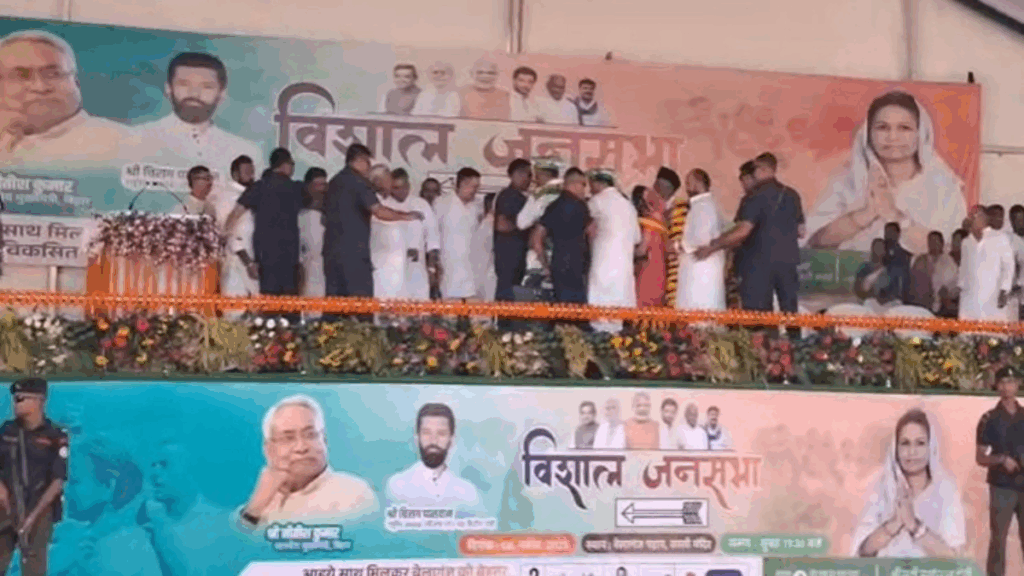 गया जिले के बेलागंज पड़ाव में शनिवार को मुख्यमंत्री नीतीश कुमार ने जदयू प्रत्याशी मनोरमा देवी के समर्थन में चुनावी जनसभा को संबोधित किया। मंच पर मुख्यमंत्री का स्वागत करने पहुंचे समर्थकों की भारी भीड़ के कारण मंच का एक हिस्सा अचानक धंस गया, हालांकि सीएम नीतीश कुमार को तुरंत सुरक्षित नीचे उतार लिया गया। सभा में नीतीश कुमार ने लालू यादव के शासनकाल पर तंज कसते हुए कहा कि “पहले 15 साल में न शिक्षा थी, न स्वास्थ्य, न सड़क और न बिजली। अब बिहार में भय का माहौल खत्म हुआ है।” उन्होंने कहा कि 2006 से मंदिरों और कब्रिस्तानों की घेराबंदी की गई,