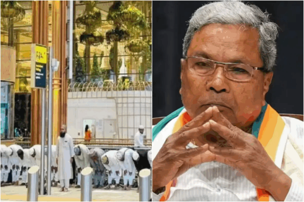 बेंगलुरु इंटरनेशनल एयरपोर्ट से सामने आए एक वीडियो ने बड़ा विवाद खड़ा कर दिया है। वीडियो में कुछ लोगों को एयरपोर्ट के टर्मिनल 2 पर खुले में सामूहिक नमाज पढ़ते हुए देखा जा सकता है, जिसके बाद सुरक्षा और धार्मिक अनुमति को लेकर बहस तेज हो गई है। जानकारी के मुताबिक, एयरपोर्ट पर पहले से यात्रियों के लिए एक प्रार्थना कक्ष मौजूद है, इसके बावजूद लोगों ने सार्वजनिक रूप से नमाज अदा की। ये लोग मक्का जाने वाले यात्रियों को सी-ऑफ करने के लिए आए थे। वीडियो में सुरक्षाकर्मी भी मौके पर मौजूद नजर आ रहे हैं, लेकिन किसी ने उन्हें रोका नहीं। इस घटना पर बीजेपी ने तीखी प्रतिक्रिया दी है।