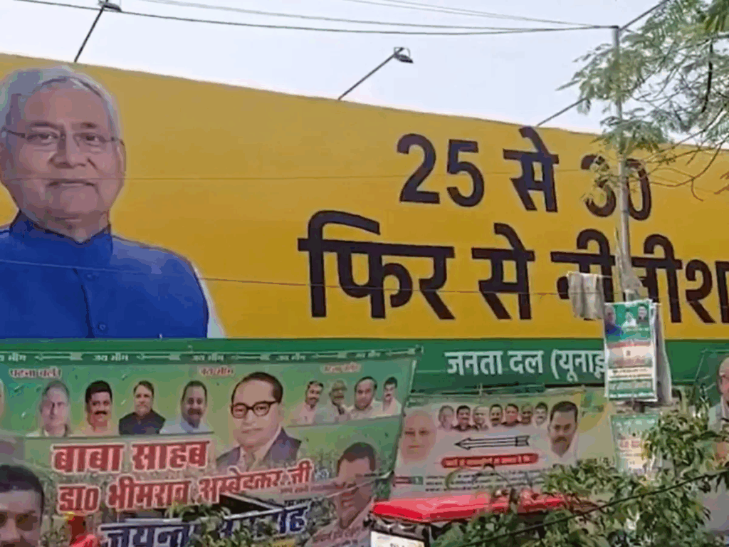 बिहार में विधानसभा चुनाव से पहले ही पोस्टर पॉलिटिक्स ने जोर पकड़ लिया है। पटना समेत कई जिलों में मुख्यमंत्री नीतीश कुमार के समर्थन में नए पोस्टर लगाए गए हैं। इन पोस्टरों पर लिखा है — “25 से 30, फिर से नीतीश” और “अब कभी जंगलराज वापस नहीं आएगा”। इससे साफ है कि जदयू कार्यकर्ता रिजल्ट से पहले ही जीत का जश्न मनाने की तैयारी में हैं। पोस्टरों में विकास और सुशासन