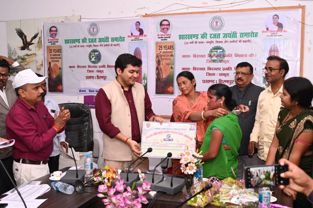 उनके उत्कृष्ट कार्य एवं योगदान के लिए प्रशस्ति पत्र और पदक प्रदान कर सम्मानित किया।उपायुक्त ने कहा कि झारखंड अब 25 वर्षों का युवा राज्य बन चुका है। यह राज्य निरंतर विकास और समृद्धि की दिशा में नए मुकाम हासिल कर रहा है। इस प्रगति में सभी नागरिकों के सहयोग एवं मेहनत का अहम योगदान है। झारखंड की तरक्की में मनरेगा ने जमीनी स्तर पर रोजगार सृजन और ग्रामीण विकास का मजबूत आधार प्रदान किया है।कार्यक्रम का संचालन प्रखंड कार्यक्रम पदाधिकारी ट्विंकल चौधरी द्वारा किया गया। समारोह के अंत में सभी अतिथियों ने झारखंड की रजत जयंती पर राज्य की निरंतर उन्नति और समृद्धि की कामना की।