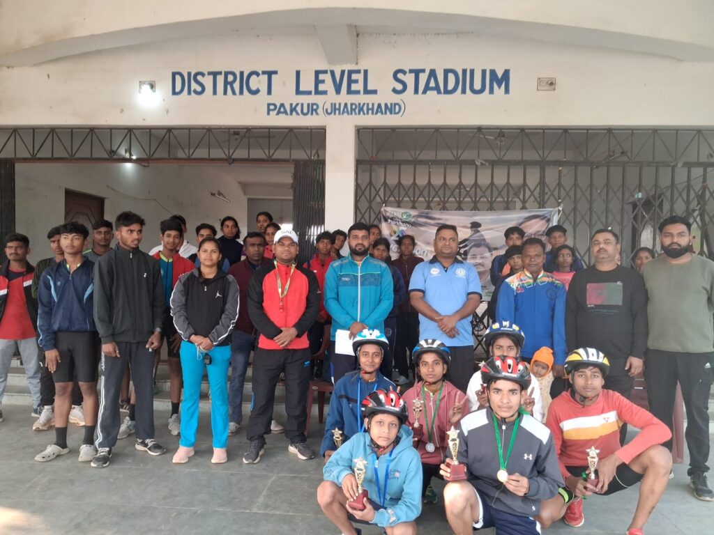 झारखंड स्थापना दिवस की 25 वीं वर्षगांठ के उपलक्ष्य में साइक्लोथॉन अपने झारखंड को जानें कार्यक्रम के तहत बैंक कॉलोनी स्टेडियम में साइकिलिंग प्रतियोगिता का भव्य आयोजन किया गया। जिला क्रीड़ा पदाधिकारी ने संयुक्त रूप से हरी झंडी दिखाकर प्रतियोगिता की शुरुआत की।इस अवसर पर बड़ी संख्या में स्कूली छात्र छात्राओं, शिक्षकगणों,अधिकारियों कर्मचारियों एवं आम नागरिकों ने भाग लिया। प्रतिभागियों ने एकता, प्रगति और गर्व का झारखंड के नारे के साथ ऊर्जा और जोश से साइकिल रेस पूरी की।जिला क्रीड़ा पदाधिकारी राहुल कुमार ने कहा कि साइक्लोथॉन अपने झारखंड को जानें के तहत साइकिलिंग प्रतियोगिता का उद्देश्य राज्य की गौरवशाली यात्रा, एकता, स्वास्थ्य और जनभागीदारी के संदेश को जन जन तक पहुँचाना है। उन्होंने प्रतिभागियों से स्वस्थ, सशक्त और