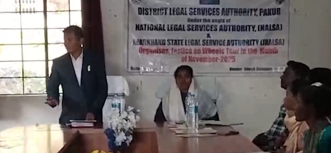 झालसा रांची के निर्देशानुसार जिला विधिक सेवा प्राधिकार पाकुड़ के तत्वाधान में प्रधान जिला एवं सत्र न्यायधीश सह अध्यक्ष जिला विधिक सेवा प्राधिकार पाकुड़ शेष नाथ सिंह के निर्देश पर प्रभारी सचिव सह अपर मुख्य न्यायिक दंडाधिकारी विशाल मांझी के मार्गदर्शन में पाकुड़ जिले के आमड़ापाड़ा प्रखंड के पाडरकोला में चलंत लोक अदालत सह विधिक जागरूकता कार्यक्रम का आयोजन किया गया। उक्त कार्यक्रम में लीगल एड डिफेंस कॉन्सिल सिस्टम के सहायक गंगाराम टुडू ने चलंत लोक अदालत के उद्देश्य पर कानूनी लाभ से संबंधित कई जानकारी साझा की ।