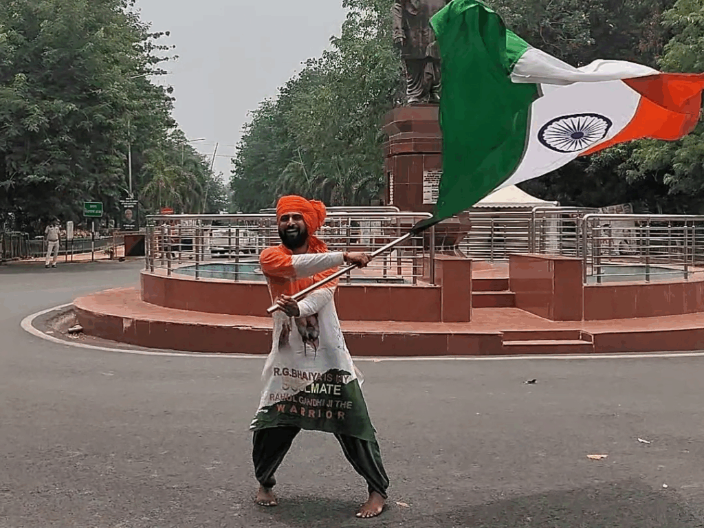 बिहार चुनाव में करारी हार के बाद कांग्रेस खेमे में मायूसी साफ दिख रही है। लेकिन इसी बीच नेता प्रतिपक्ष राहुल गांधी के समर्थक दिनेश शर्मा का अनोखा जोश चर्चा में है। दिनेश शर्मा नंगे पैर, हाथ में कांग्रेस का झंडा लेकर सीधे पटना में नेता प्रतिपक्ष के आवास पहुंच गए।
