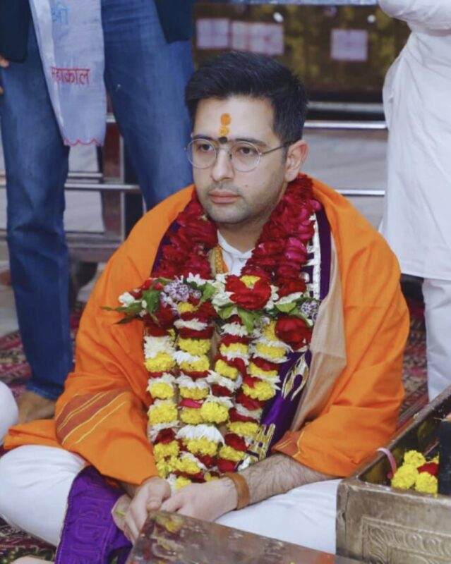उज्जैन से खुशखबरी सामने आई है। आम आदमी पार्टी के राज्यसभा सांसद राघव चड्ढा महाकालेश्वर मंदिर पहुंचे और बेटे के जन्म की खुशी में विशेष पूजा-अर्चना की। जानकारी के अनुसार, राघव चड्ढा ने भगवान महाकाल से अपने परिवार और नए बच्चे के स्वास्थ्य और सुख-समृद्धि की कामना की। मंदिर में उन्होंने भक्तों के साथ आशीर्वाद लिया और शांतिपूर्ण वातावरण में दर्शन किए। इस अवसर पर उन्होंने अपने परिवार और शुभचिंतकों के लिए भी प्रार्थना की। राघव चड्ढा ने मीडिया से बातचीत में कहा कि यह उनके लिए बेहद भावनात्मक और खास दिन है,