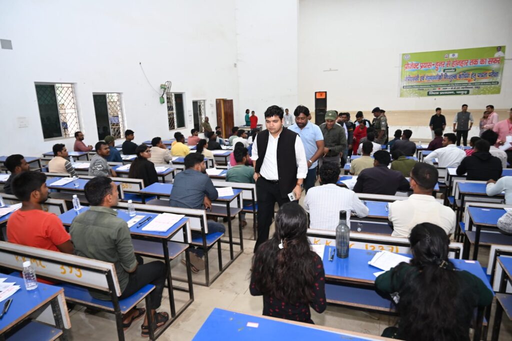 जिला प्रशासन द्वारा उड़ान IAS एकेडमी, रांची के सहयोग से संचालित प्रोजेक्ट प्रयास हुनर से होनहार तक का सफर के अंतर्गत जेपीएससी एवं जेएसएससी की निःशुल्क कोचिंग हेतु पात्रता परीक्षा के के एम कॉलेज में शांतिपूर्ण वातावरण में संपन्न हुई। उपायुक्त ने परीक्षा केंद्र का संपूर्ण जायजा लिया। उन्होंने कक्ष व्यवस्था, पर्यवेक्षण तंत्र, सुरक्षा तैयारी, उपस्थिति पंजी तथा अभ्यर्थियों के लिए उपलब्ध कराई गई सुविधाओं की विस्तार से समीक्षा की। निरीक्षण के क्रम में उपायुक्त ने अभ्यर्थियों से संवाद कर उनकी तैयारी एवं आवश्यकताओं की जानकारी ली और उन्हें उत्साहवर्धन किया।परीक्षा में कुल 569 पंजीकृत परीक्षार्थियों में से 396 उपस्थित हुए, जबकि 173 अनुपस्थित रहे। परीक्षा निर्धारित समय दोपहर 12:00 बजे से 02:00 बजे तक शांतिपूर्वक संपन्न हुई। चयनित विद्यार्थियों को जेपीएससी एवं