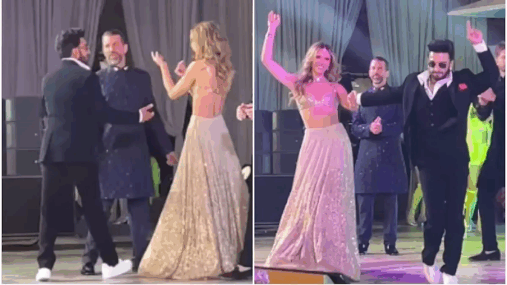 उदयपुर का सिटी पैलेस नेत्रा मंटेना की संगीत सेरेमनी में सितारों से जगमगा उठा। अमेरिकी अरबपति रामा राजू मंटेना की बेटी की इस शाही शादी में बॉलीवुड स्टार्स और इंटरनेशनल सेलेब्स शामिल हुए। खास चर्चा का विषय रहा रणवीर सिंह का डोनाल्ड ट्रंप जूनियर की गर्लफ्रेंड के साथ ‘झुमका’ गाने पर डांस, जिसका वीडियो सोशल मीडिया पर वायरल है। ट्रंप जूनियर भी इस पल को एंजॉय करते