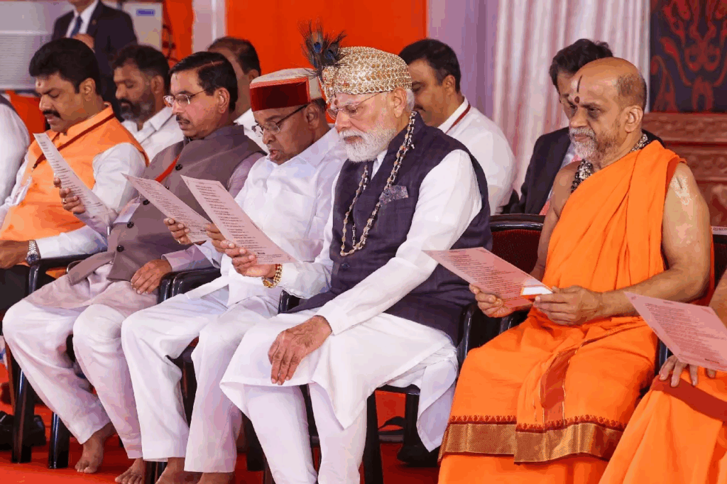 प्रधानमंत्री नरेंद्र मोदी ने उडुपी में आयोजित लक्ष कंठ गीता पारायण कार्यक्रम में हिस्सा लिया, जहां उन्होंने छात्रों, भिक्षुओं, विद्वानों और विभिन्न क्षेत्रों के नागरिकों सहित 1 लाख से अधिक प्रतिभागियों के