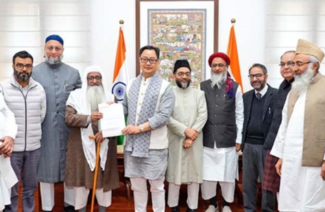 ऑल इंडिया मुस्लिम पर्सनल लॉ बोर्ड के प्रतिनिधियों ने केंद्रीय अल्पसंख्यक मामलों के मंत्री किरेन रिजिजू से उनके कार्यालय में मुलाकात की। बैठक में AIMIM सांसद असदुद्दीन ओवैसी और आजाद समाज पार्टी के सांसद चंद्रशेखर आजाद भी उपस्थित रहे। इस मुलाकात के दौरान अल्पसंख्यक समुदाय से जुड़े मुद्दों, कानूनी चिंताओं और नीतिगत मांगों पर विस्तार से चर्चा हुई। सभी नेताओं ने संवाद को आगे बढ़ाने पर सहमति जताई।