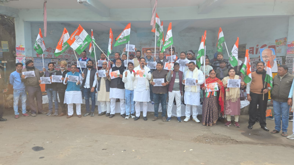 सामाजिक न्याय और गरीबों के प्रति राज्य की जिम्मेदारी पर सीधा हमला है। रोजगार की वैधानिक गारंटी समाप्त कर रही है, केंद्र सरकार अपनी वित्तीय जिम्मेदारी से पीछे हट रही है, और संघीय ढांचे को कमजोर करते हुए राज्यों पर अतिरिक्त बोझ डाल रही है। जिलाध्यक्ष श्री सिंह ने मोदी सरकार राष्ट्रपिता महात्मा गांधी के नाम को मिटाना चाहती मगर गांधी जी के नाम जनता के दिलो से कैसे हटा देगी। आज साबित हो गया भाजपा गोडसे के वंशज है। श्री सिंह ने कहा महात्मा गांधी राष्टिय ग्रामिण रोजगार गारंटी अधिनियम का नाम बदलना देश के लिय शर्मनाक है। झारखंड धरना-प्रदर्शन में मौजूद कांग्रेस नेताओं और कार्यकर्ताओं ने एक स्वर में मनरेगा के साथ छेड़छाड़ का विरोध किया और चेतावनी दी कि यदि केंद्र सरकार ने इस जनविरोधी कदम को वापस नहीं लिया, तो कांग्रेस पार्टी सड़क से संसद तक आंदोलन को और तेज करेगी। धरना प्रद्शन कार्यक्रम का संचालन प्रदेश प्रतिनीधी मनोज यादव और संचालन शाहीद कमर ने किया। संबोधित करने वाले में प्रदेश महासचिव श्री मदन महतो, रवी रंजन सिंह, सुरेश चंद्र झा, मुख्तार खान, कुमार गौरव, राजेश्वर सिंह, यादव जैसे कई कांग्रेसी कार्यकर्ता शामिल थे ।