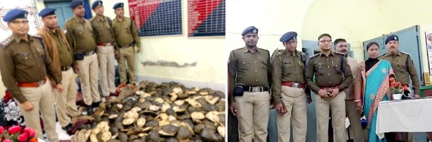 बरहरवा स्टेशन पर आरपीएफ ने जंगली कछुओं की तस्करी का भंडाफोड़ किया। फरक्का एक्सप्रेस में छापेमारी के दौरान तीन तस्करों – कुर्रम पठान, कुसमा पठान और मंजूर पठान – को गिरफ्तार किया गया। ट्रेन के 22 डिब्बों में 22 बोरी कछुए बरामद हुए। आरपीएफ को गुप्त सूचना मिली थी कि उत्तर प्रदेश से कछुए पश्चिम बंगाल भेजे जा रहे हैं। गिरफ्तार आरोपियों पर वन्यजीव संरक्षण अधिनियम के तहत मामला दर्ज किया गया। बरामद कछुओं को वन विभाग को सौंपने की प्रक्रिया शुरू हो गई। यह कार्रवाई रेल मार्ग से वन्यजीव तस्करी के खिलाफ बड़ी उपलब्धि मानी जा रही है।