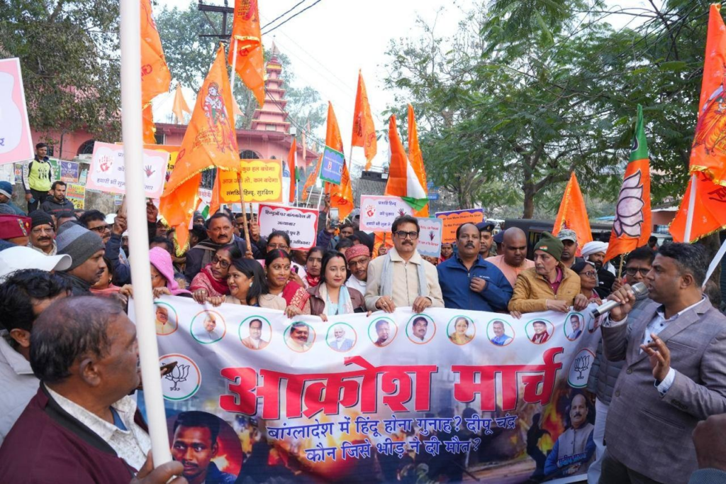 बांगलादेश में हिंदुओं पर हो रहे लगातार हमलों और बर्बरता के विरोध में आज हजारीबाग में एक जोरदार आक्रोश प्रदर्शन आयोजित किया गया। इस प्रदर्शन में हज़ारों सनातनी नागरिकों ने हिस्सा लिया, जिनमें विधायक श्री प्रदीप प्रसाद जी भी शामिल थे।” “प्रदर्शनकारियों ने बांगलादेश में हिंदुओं पर हो रहे हमलों के खिलाफ कड़ी निंदा की और सरकार से इस मामले में ठोस कदम उठाने की मांग की।