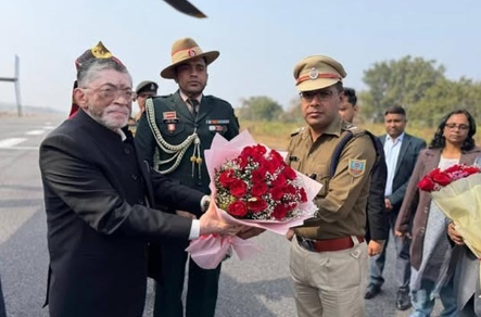 माननीय राज्यपाल संतोष कुमार गंगवार का धनबाद आगमन पर हवाई अड्डे पर उनका गर्मजोशी से स्वागत किया गया। इस अवसर पर वरीय पुलिस अधीक्षक प्रभात कुमार और पुलिस अधीक्षक नगर रित्विक श्रीवास्तव ने पुष्पगुच्छ भेंट कर राज्यपाल महोदय का अभिनंदन किया। स्वागत समारोह में राज्यपाल को पुलिस बल द्वारा गार्ड ऑफ ऑनर भी प्रदान किया गया। प्रशासनिक अधिकारी और वरिष्ठ पुलिस पदाधिकारी इस दौरान मौजूद रहे। यह कार्यक्रम राज्यपाल के आगमन और उनके सम्मान में आयोजित किया गया। राज्यपाल संतोष कुमार गंगवार की धनबाद यात्रा के दौरान शहर में सुरक्षा और आयोजन को लेकर विशेष इंतजाम किए गए थे।