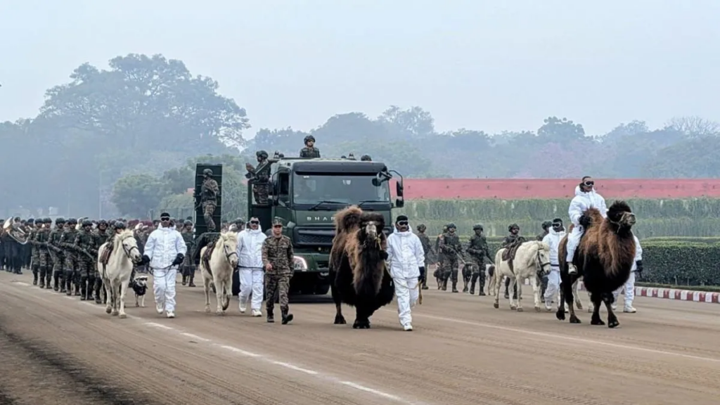 गणतंत्र दिवस 2026 के अवसर पर कर्तव्य पथ पर आयोजित परेड में भारतीय सेना के रिमाउंट एंड वेटरनरी कोर (आरवीसी) का विशेष पशु दल पहली बार प्रदर्शित किया जाएगा। इस दल को विशेष रूप से परेड के लिए चयनित किया गया है और इसमें सेना में सेवा देने वाले विभिन्न जानवर शामिल हैं। इस दल में दो बैक्ट्रियन ऊंट, चार ज़ांस्कर टट्टू, चार शिकारी पक्षी, दस भारतीय नस्ल के सेना के कुत्ते और सेवा में मौजूद छह पारंपरिक सैन्य कुत्ते शामिल होंगे।