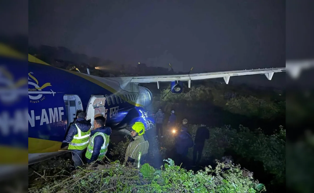 नेपाल में शुक्रवार शाम बुद्ध एयर की फ्लाइट संख्या 901 का विमान भद्रपुर एयरपोर्ट पर लैंडिंग के दौरान रनवे से फिसल गया, और करीब 200 मीटर दूर घास वाले इलाके में जाकर रुका। विमान में 51 यात्री और 4 चालक दल सवार थे।