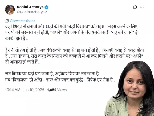 उन्होंने लिखा कि बड़ी विरासत को तहस-नहस करने के लिए बाहरी लोगों की जरूरत नहीं होती, बल्कि “अपने” और “नए बने अपने” ही इसके लिए काफी हैं। रोहिणी ने अपने पोस्ट में लिखा कि जब अहंकार और लोभ सिर चढ़ जाता है, तो परिवार के ही लोग पहचान और वजूद को मिटाने के लिए आमादा हो जाते हैं।