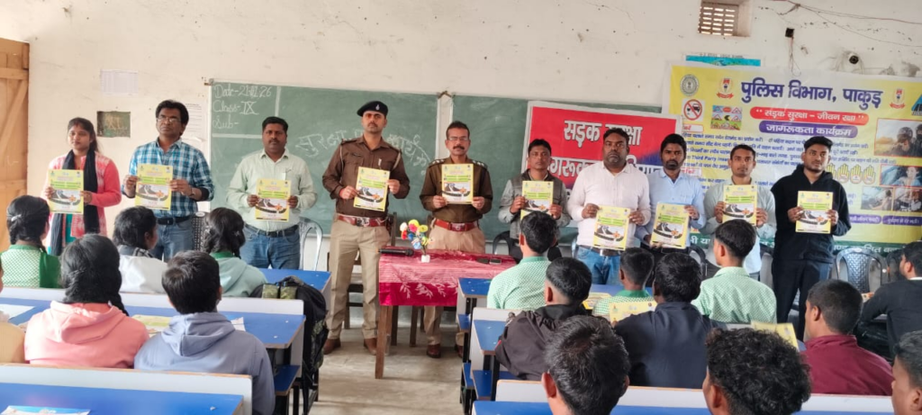 राष्ट्रीय सड़क सुरक्षा माह 2026 के कार्यक्रम के 21 वे दिन सावधानी की पाठशाला सड़क सुरक्षा जीवन रक्षा कार्यक्रम के तहत जिला लिट्टीपाड़ा प्रखंड में दो स्कूलों में पुलिस विभाग एवं रोड सेफ्टी टीम संयुक्त रूप से अवेयरनेस का प्रोग्राम किया गया। कस्तूरबा बालिका उच्च विद्यालय लिट्टीपाड़ा एवं उत्क्रमित उच्च विद्यालय प्लस टू के सभी विद्यार्थियों को राष्ट्रीय सड़क सुरक्षा माह 2026 के अंतर्गत चलने वाले रोड सेफ्टी के बारे में
