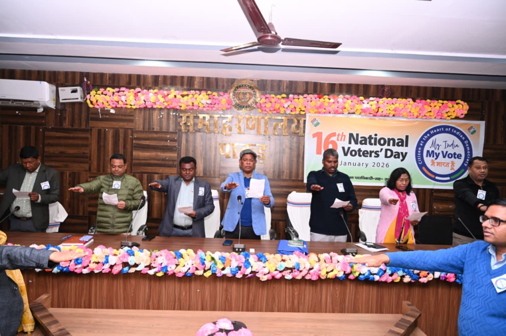 राष्ट्रीय मतदाता दिवस को जिले के विभिन्न सरकारी कार्यालयों में जागरूकता कार्यक्रमों का आयोजन किया गया। इस अवसर पर अपर समाहर्ता जेम्स सुरीन ने पदाधिकारियों एवं कर्मियों को मतदान के प्रति जागरूक रहने तथा अपने मताधिकार का निर्भीक होकर प्रयोग करने की शपथ दिलाई। अपर समाहर्ता ने कहा कि लोकतांत्रिक व्यवस्था में मतदान का अत्यंत महत्वपूर्ण स्थान है। उन्होंने बताया कि वर्ष 2011 से प्रत्येक वर्ष 25 जनवरी को राष्ट्रीय मतदाता दिवस के रूप में मनाया जाता है, जिसका उद्देश्य नागरिकों को लोकतंत्र में उनकी भागीदारी और कर्तव्यों के प्रति जागरूक करना है। उन्होंने कहा कि यह दिवस प्रत्येक नागरिक को यह स्मरण कराता है कि मतदान केवल अधिकार ही नहीं, बल्कि राष्ट्र के प्रति एक महत्वपूर्ण कर्तव्य भी है। इस अवसर पर अधिकारियों एवं कर्मियों को शपथ दिलाई गई। कार्यक्रम के दौरान अपर समाहर्ता जेम्स सुरीन, अनुमंडल