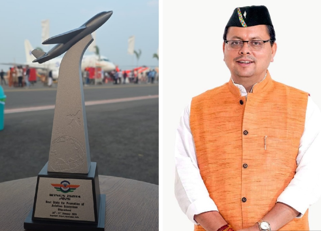 उत्तराखंड को Wings India 2026 में “Best State for Promotion of Aviation Ecosystem” का पुरस्कार मिला। हैदराबाद के बेगमपेट एयरपोर्ट पर आयोजित समारोह में केंद्रीय नागरिक उड्डयन मंत्री किंजरापु राममोहन नायडू और MoCA सचिव समीर कुमार सिन्हा ने यह सम्मान प्रदान किया। उत्तराखंड नागरिक उड्डयन विकास प्राधिकरण (UCADA) की टीम इस अवसर पर मौजूद रही। मुख्यमंत्री पुष्कर सिंह धामी ने कहा कि