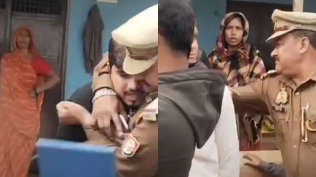 यूपी के औरैया से पुलिस की दबंगई का चौंकाने वाला मामला सामने आया है। अजीतमल कोतवाली क्षेत्र में एक युवक द्वारा सवाल पूछने और वीडियो बनाने पर दरोगा रामपुत्र सिंह का पारा चढ़ गया। वायरल वीडियो में साफ देखा जा सकता है कि दरोगा युवक को थप्पड़ मारते हैं, बगल में दबाकर रखते हैं और फिर गिरा-गिराकर पीटते हैं। हैरानी की बात यह है कि मौके पर मौजूद नगर पंचायत के ईओ और अन्य लोग तमाशबीन बने रहे,