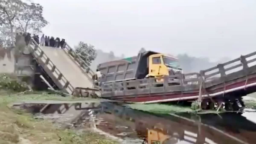 पश्चिम बंगाल के कूच बिहार जिले के सीतलकुची इलाके में शुक्रवार को एक बड़ा हादसा हुआ। मालवाहक ट्रक पुल पार कर रहा था कि पुल अचानक गिर गया। ट्रक टूटे हुए ढांचे पर लटका रह गया, लेकिन सौभाग्यवश किसी के हताहत होने की खबर नहीं है। स्थानीय निवासियों का कहना है कि उन्होंने पहले भी प्रशासन को पुल की खराब स्थिति के बारे में चेतावनी दी थी। हादसे के बाद प्रशासन ने तुरंत जांच शुरू कर दी है और राहत